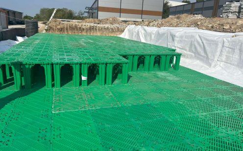Hundreds of Pipelife Stormbox II infiltration crates are used to construct an underground tank | Pipelife