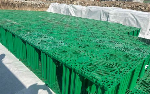 Целта на тази дренажна призма е контролирана инфилтрация в почвата на атмосферните води, отведени от покривните площи и прилежащите терени на предприятието. Такава система не само значително намалява възможността от наводнения в съответния район, но също така помага да се възстанови естественият воден цикъл. Обемът на монтираната дренажна призма възлиза на 56 куб.м, като са съоръжението се състои от 130 дренажни блокчета Stormbox.